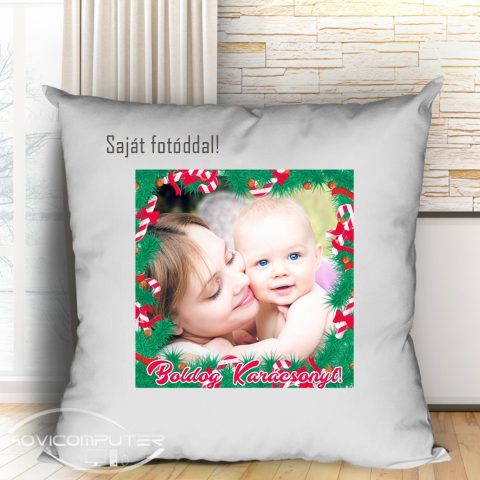 Fényképes párna, boldog karácsonyt. Karácsonyi párna saját fotóval. Tökéletes ajándék édesanyádnak, nagyszülőknek, de akár barátoknak és kollégáknak is, ha nem szeretnéd a megszokott ajándékot adni nekik idén is karácsonyra. Kosárba helyezés előtt ne fele