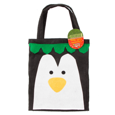 Ajándékozzon stílusosan! Karácsonyi, puha, szövet ajándéktáska, pingvin figurával az elején. Ideális lehet kisebb ajándékok átadására.