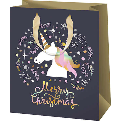 Karácsonyi ajándéktáska 23x18x10cm, közepes, unikornis