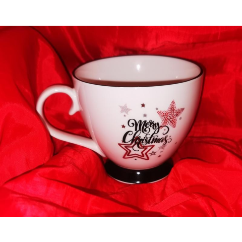 Merry Christhmas felirattal, csillag díszítéssel, fehér alapon antracit-fekete színekben, űrtartalma 42 cl.