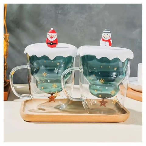 Karácsonyi bögre készlet fedővel – 2 db TX308438Hozd el az ünnepi hangulatot otthonodba ezzel a különleges, karácsonyi mintás kávéscsésze készlettel. A duplafalú, boroszilikát üvegből készült csészék kiválóan tartják az ital hőmérsékletét, miközben kényelmes fogást biztosítanak.Jellemzők:Anyag: magas minőségű boroszilikát üvegKialakítás: duplafalú, karácsonyi minta (hópelyhek, csillagok)Fedő: dekoratív fedél Mikulás vagy hóember figurávalŰrtart