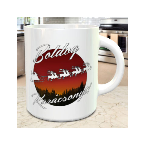 Karácsonyi bögre, mikulás szánja. Karácsonyi ajándék férfiaknak és nőknek, egy praktikus bögre, aminek bármelyik korosztály örülni fog. Boldog karácsonyt felirattal és mikulás szánjával bárki otthonában megállja a helyét akár dekorációnak is. A bögre szín