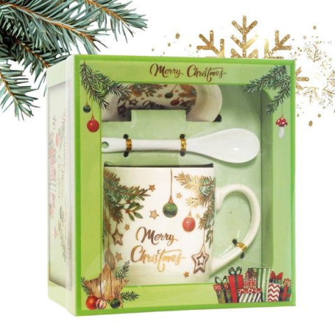 Karácsonyi bögre szett 400 ml KB16WZ1Ez a karácsonyi motívumokkal díszített kerámia bögre szett tökéletes ajándék az ünnepi időszakban minden kávé- vagy teakedvelő számára. A készlet tartalmaz egy elegáns csészealjat és egy hozzá illő kanalat, így nemcsak praktikus, hanem stílusos kiegészítője is az otthoni pillanatoknak.A bögre karácsonyi mintái meghitt, ünnepi hangulatot varázsolnak, miközben a kiváló minőségű kerámia hosszú élettartamot és kellemes