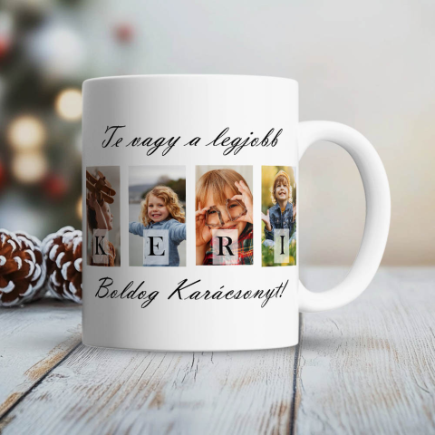 Megható és praktikus karácsonyi ajándék, amely minden nap emlékezteti a keresztanyát vagy keresztapát, mennyire fontos része a családnak. A „Te vagy a legjobb Keri” mintás bögre 4 saját fotóval készül, így minden korty egy kedves emlék lesz.Tartós, szubli
