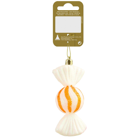 1 kép Karácsonyi dekor cukorka dísz műanyagból 10 cm fehér-narancssárga