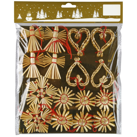 Ezekkel a szalmadíszekkel könnyedén karácsonyi hangulatot varázsolhat otthonában. A díszek sokféleképpen használhatók és könnyen felakaszthatók.