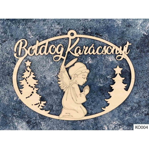 Karácsonyi dekoráció, ajtódísz, boldog karácsonyt Anyaga: natúr fa Mérete: 28 x 25,5 cm