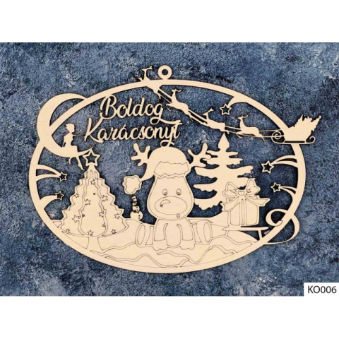 Karácsonyi dekoráció, ajtódísz, boldog karácsonyt Anyaga: natúr fa Mérete: 28 x 25,5 cm