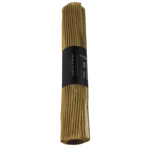 A fényes Crinkel-poliészterből készült dekorszövet elegáns, ünnepi hangulatot kölcsönöz minden formavilágnak. 150 cm x 28 cm-es méretével asztali dekorációkhoz, ajándékcsomagoláshoz vagy barkácsoláshoz ideális. A kétféle csíkos kivitelben kapható aranyszínű anyag bármilyen kompozícióba csillogást hoz - tökéletes karácsonyra, különleges alkalmakra vagy stílusos rendezvényekre. A poliészterből készült robusztus minőségnek köszönhetően a szövet könn