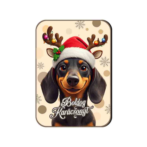 1 kép Karácsonyi fa hűtőmágnes, Tacsi kutya karácsonya