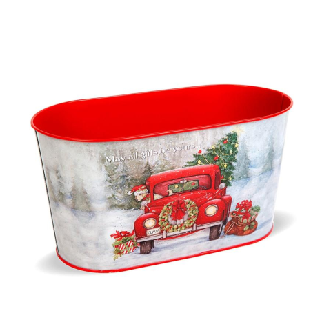 1 kép Karácsonyi fém kosár, autós. Mérete: 23x11,5x11,5 cm