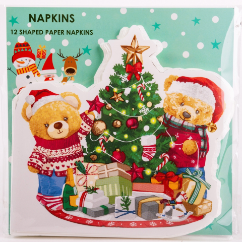 Karácsonyi forma szalvéta (12 db) - Karácsonyfa macikkal