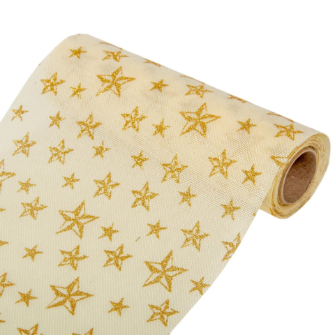 Karácsonyi glitteres lenvászon arany csillag mintás krém 23cmx4,5m