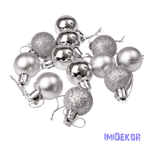Karácsonyi gömb szett 12 db-os 2,5cm - Ezüst karácsonyfadísz árgrafikon