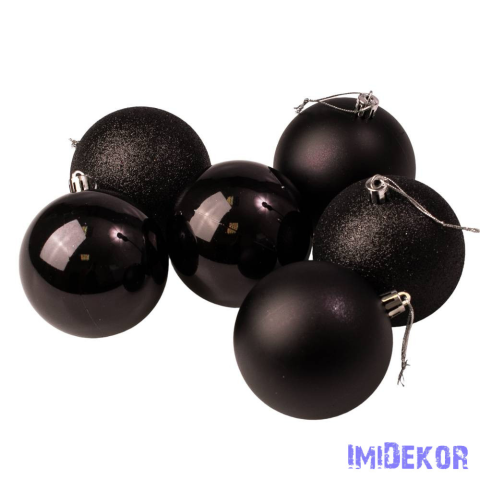 Karácsonyi gömb szett 6 db-os 8cm - Fekete karácsonyfadísz árgrafikon
