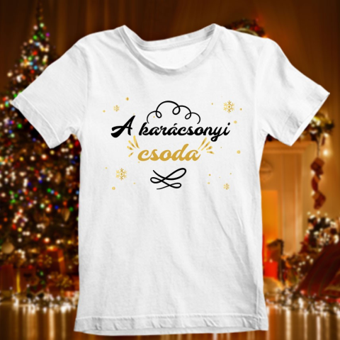 Karácsonyi gyerek póló, karácsonyi csoda mintás gyerek póló a családi karácsonyi pólószett külön rendelhető gyerek méretű darabja, amely ideális választás több gyermek esetén, ha minden családtag szeretne részt venni az ünnepi összeöltözésben. A gyerek pó