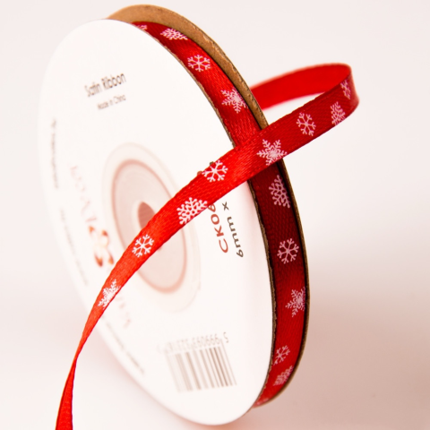 1 kép Karácsonyi hópehely mintás szatén szalagok - 6 mm több szín