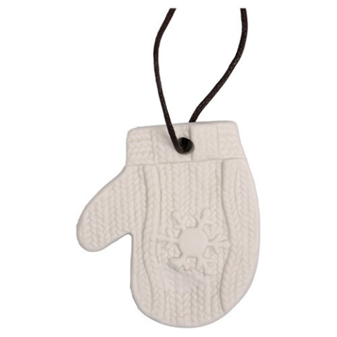 Karácsonyi kerámia akasztós 6 x 6 cm kötött kesztyű fehér