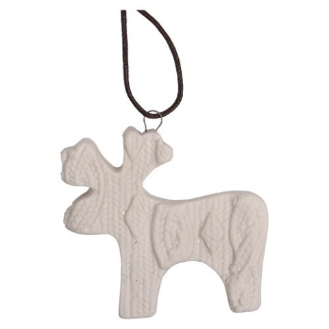 Karácsonyi kerámia akasztós 7 x 7 cm kötött rénszarvas fehér