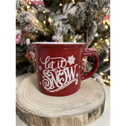Karácsonyi bögre, piros színben, Let it Snow felirattal. Űrtartalom: 330 ml. Anyaga: kerámia.