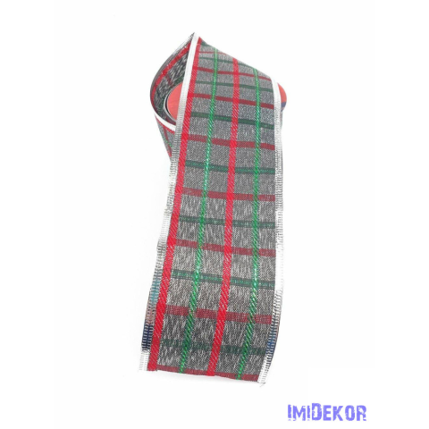 Karácsonyi kockás szalag 6cm x 9,14m - Ezüst szalag, masni 1 kép
