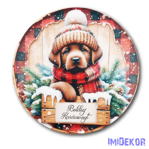 1 kép Karácsonyi kör tábla 20cm - Kutyusos - Boldog Karácsonyt