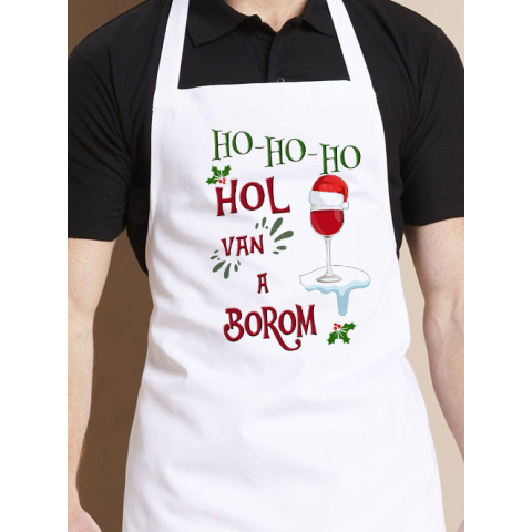 Karácsonyi kötény, hol van a borom. Vicces kötény bor kedvelő férfiaknak, mikulásra és karácsonyra. Ho-Ho-Ho Hol van a borom feliratos kötény tökéletes ajándék apukáknak, testvéreknek és barátoknak. Válaszd ki milyen színű kötényre kéred a mintát és mi pá