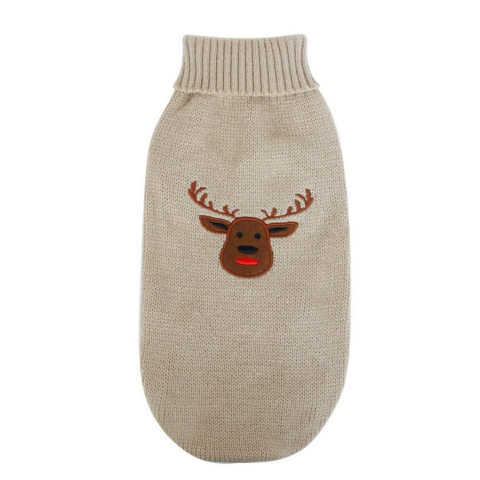 Karácsonyi kötött kutyapulóver rénszarvas mintával, barna S-es kutyaruha 1 kép