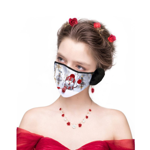 1 kép Karácsonyi maszk / arcmaszk fülvédővel - hóember