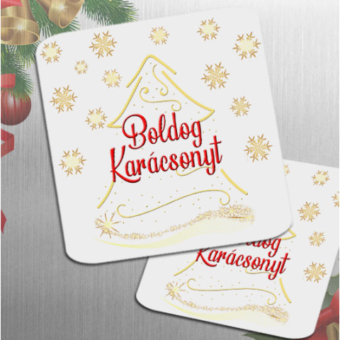 Karácsonyi meglepetés, boldog karácsonyt hűtőmágnes. Arany és piros színű mintával ellátott hűtőmágnes boldog karácsonyt felirattal. Kivánj egy kis aprósággal boldog karácsonyt barátodnak, ismerősödnek A négyzet alakú hűtőmágnes anyaga 1 mm vastag mágnes