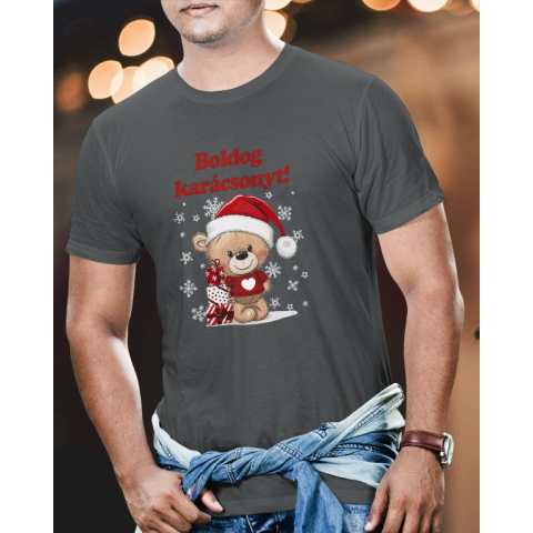 Karácsonyi meglepetés, cuki macis póló. Kívánj vele boldog karácsonyt az ünnepek alkalmából vagy rendelj mellé gyerek és női változatot is, ami karácsonyi fotózásra is tökéletes. Az aranyos maci mintával, bárkinek mosolyt csal az arcára. A póló többféle s