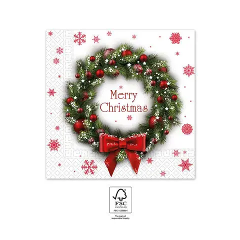 1 kép Karácsonyi Merry Xmas Wreath szalvéta 20 db-os 33x33 cm FSC