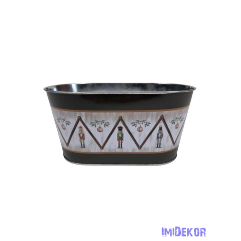 Karácsonyi mintás bádog kaspó ovál - Diótörő figura