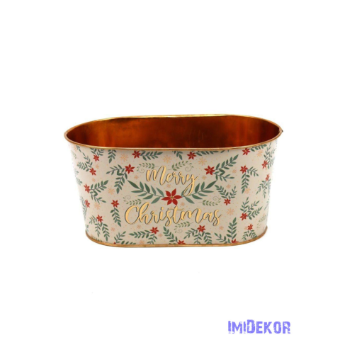 Karácsonyi mintás bádog kaspó ovál - Merry Christmas