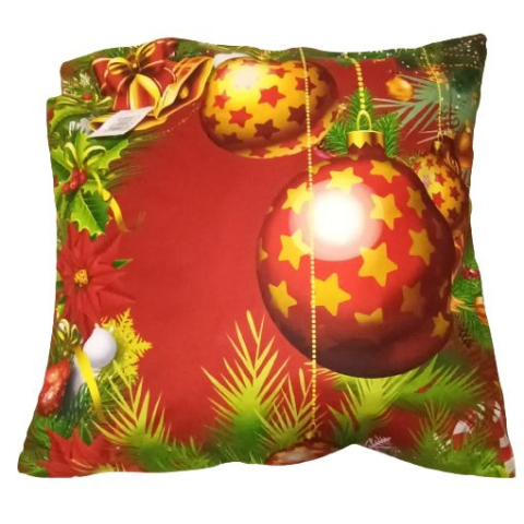 Ez a gyönyörű karácsonyi párnahuzat tökéletes választás az ünnepi hangulat megteremtéséhez otthonában. A piros alapszínű huzat vidám, arany csillagokkal díszített karácsonyi gömböket ábrázol, melyek fenyőágakkal és ara