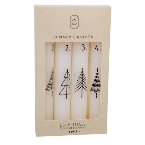 Karácsonyi mintás szálas gyertya fehér 16cm 4db/csom (db ár)