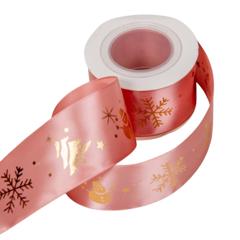 Karácsonyi mintás szatén szalag rózsaszín 4cmx9,1m