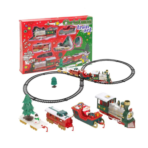 Karácsonyi kisvonat szett mely jól mutat a karácsonyfa körül, gyerekszobában vagy akár a karácsonyi falu körül. Tartalma: 1 mozdony, 1 szán, 1 vagon, 1 hóemberes vagont, 2 fa, egy 8-as formáló sín, 4 egyenes sín, 10 db görbe sín. Sín teljes hossza: 260