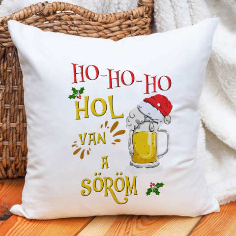 Karácsonyi párna, hol van a söröm. Vicces párna sör kedvelő férfiaknak, mikulásra és karácsonyra. Ho-Ho-Ho Hol van a söröm feliratos párna tökéletes ajándék apukáknak, testvéreknek és barátoknak. Válaszd ki milyen színű párnára kéred a mintát és mi pár na