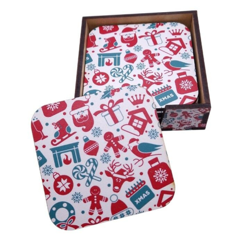 Karácsonyi mintás poháralátétkészlet 6+1 darabos