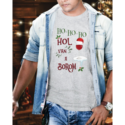 Karácsonyi póló, hol van a borom. Vicces póló bor kedvelő férfiaknak, mikulásra és karácsonyra. Ho-Ho-Ho Hol van a borom feliratos póló tökéletes ajándék apukáknak, testvéreknek és barátoknak. Válaszd ki milyen színű pólóra kéred a mintát és mi pár napon