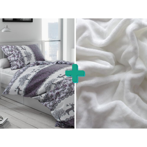1 kép KARÁCSONYI RÉNSZARVAS szürke mikroplüss ágynemű + SOFT fehér mikroplüss lepedő 90x200 cm