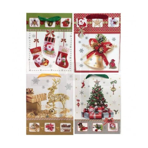 Karácsonyi szalagfüles ajándéktasak - 18x24 cm ajándéktasak árgrafikon