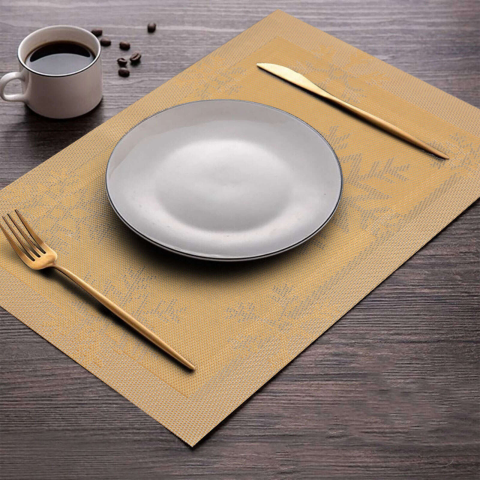 Karácsonyi tányéralátét jellemzői: Méret: 45 x 30 cm Anyag: PVC anyag + 20% poliészter Szín: arany Mosható: igen Súly: 83 g Nagyméretű, könnyen tisztítható Vízálló Téglalap forma Megvédi az asztalterítőt a balesetektől A csomag tartalma: 1 db karácsonyi tányéralátét