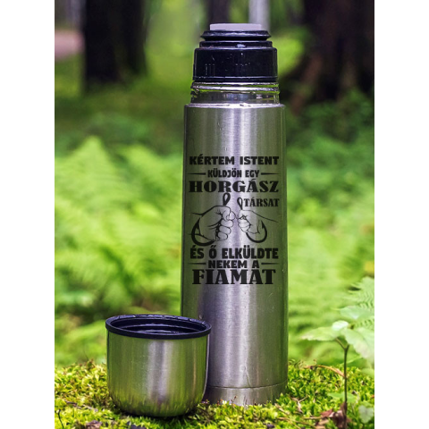 Horgász termosz apáknak, horgásztársam a fiam. Kértem az Istent, hogy küldjön egy horgász társat és ő elküldte nekem a fiamat feliratos termosz apukáknak. Legjobb ajándék pecás apukáknak Apák napjára, karácsonyra, születésnapra. Melegen vagy hidegen is tu