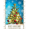 KARÁCSONYI ÜDVÖZLŐLAP BORÍTÉKKAL, ÁLLÓ, KARÁCSONYFA + HÓPELYHEK
