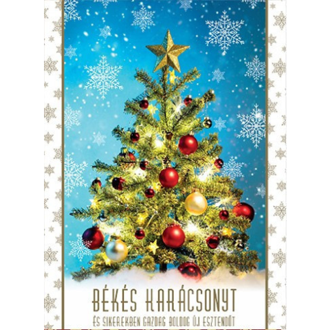 KARÁCSONYI ÜDVÖZLŐLAP BORÍTÉKKAL, ÁLLÓ, KARÁCSONYFA + HÓPELYHEK party kellék árgrafikon