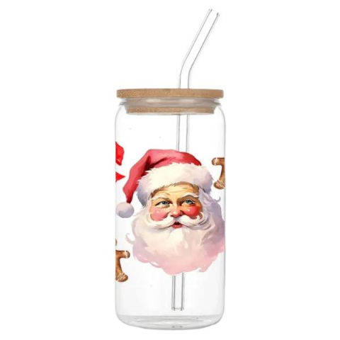 Karácsonyi üvegpohár Mikulás és mézeskalács mintával 470ml MB443922Hangulatos, 470 ml űrtartalmú ünnepi üvegpohár, amelyet Mikulás, mézeskalács és karácsonyi motívumok díszítenek 3D UV nyomtatással. A pohár bambusz tetővel és átlátszó szívószállal érkezik, így praktikus, környezetbarát és stílusos kiegészítője a karácsonyi időszaknak.Méretek:Magasság: 14,8 cmÁtmérő: 7,8 cmŰrtartalom: 16oz (473 ml)Jellemzők:Anyaga: tartós, átlátszó üvegMintáz