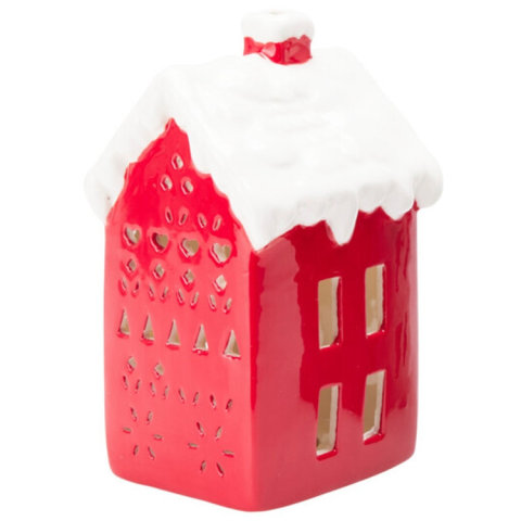 Karácsonyi világítós kerámia házikó - piros