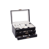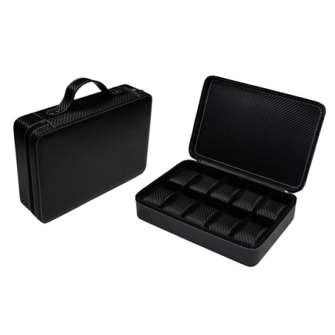 Karbon hatású mesterséges bőr óratartó, óradoboz, utazótok 10 óra számára. Belseje szintén karbon hatású mesterséges bőr. Használható óratartó dobozként, utazótokként, kézi táskaként óráink számára. Külső méretei: Szélesség: 31,5cm Mélység: 20cm Magass